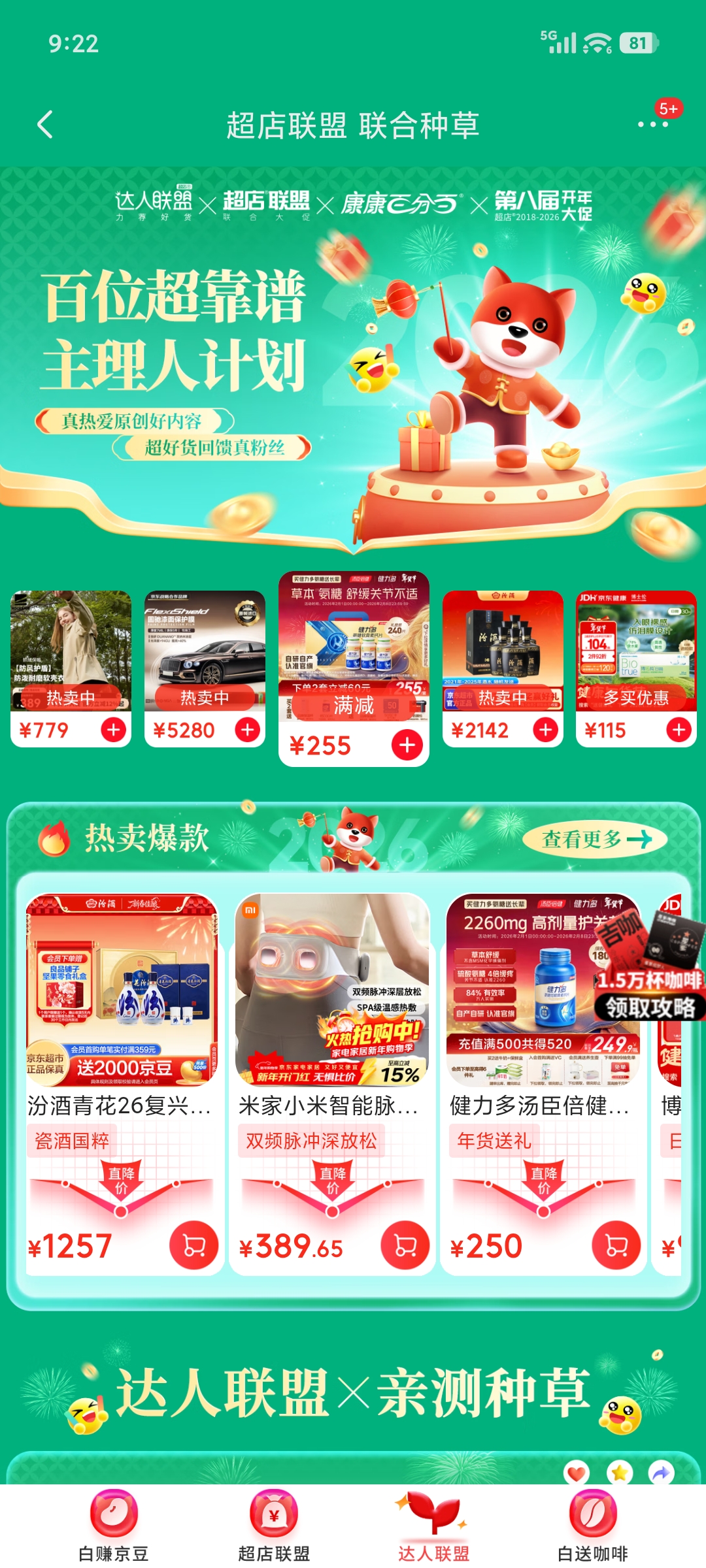 好店预热场+超店大促场+达人种草场+王牌奧莱场+联合开卡场+吉本白拿场