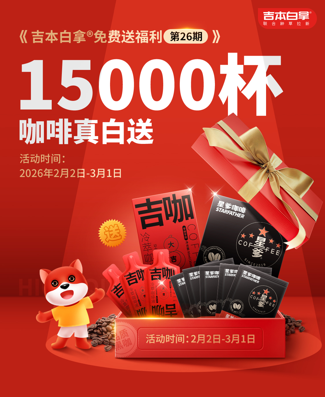 本会场主要落地多个目的:通过1.5万杯精品咖啡产品作为利益点引导用户进入会场分流到成员店铺下单等动作要求实现免费领咖啡的闭环动作,既能促进店铺真增量销售也能为消费者提供多一份福利。吉本白拿白送会场从增量转化效率提高→到流量价值利用率提高→再到粉丝粘性互动率提高等多项指标层面的提高创造了潜在条件。值得注意的是本会场的全部实物赠品和福利权益全部由超店联盟项目组承担。兑现了品牌降、平台补、联盟贴、干到底的超店干法。